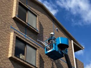 4階建ての最上階での工事なので高所作業車にて工施工しました。