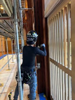 県の担当者の材料検査も終え、取付作業開始です。