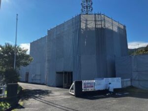 足場を使って排煙設備を全部取替ました。