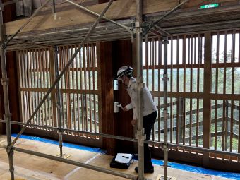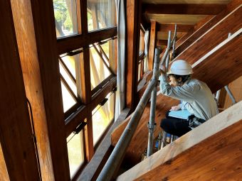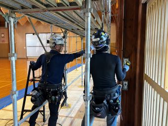 施工場所が高所になるので、一番最初に足場組を行いました。